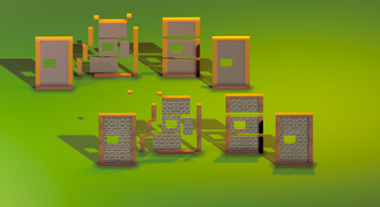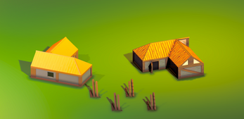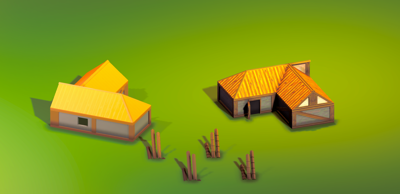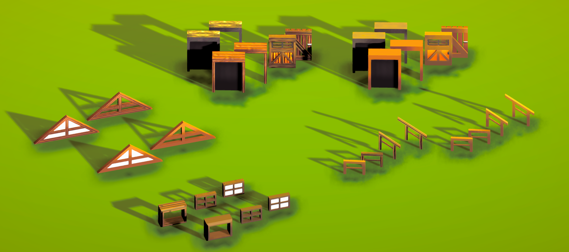 - Contains 9 wall sets, each with 139 modular pieces—from standard and window walls to triangular roof-bearing designs.The Walls range from 20–60 vertices.